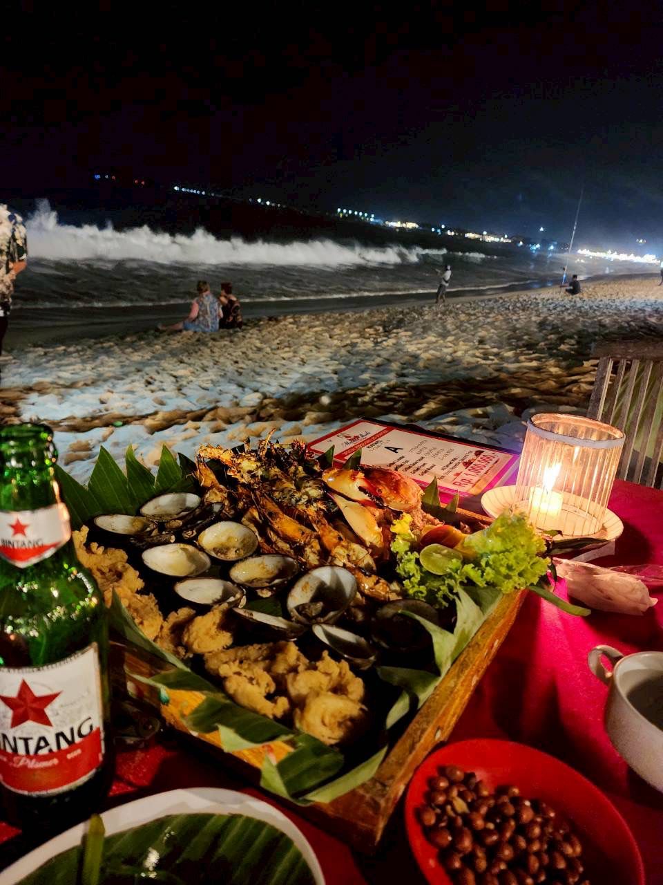 - 🍽️ 夜: ジンバランビーチでシーフードディナー
